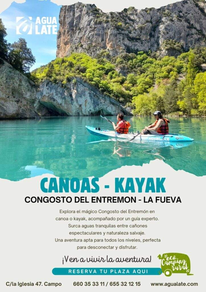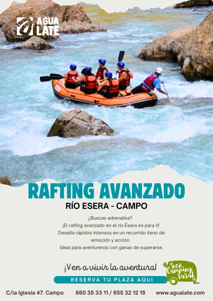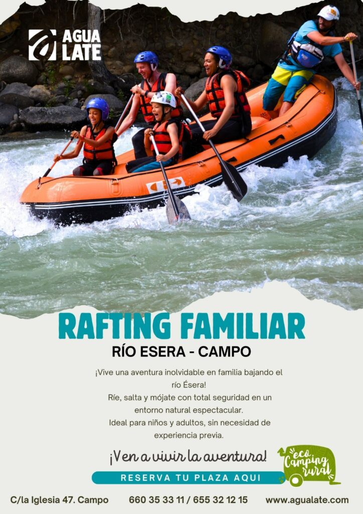 A tan solo 15 minutos de nuestro camping se encuentra la localidad de Campo, el «Campo Base» y punto de referencia del Rafting en la Comarca de La Ribagorza. La empresa AGUALATE, ha preparado las siguientes actividades ¡Haz tu reserva directamente!